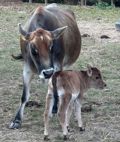 She is a precious little heifer that was calved on 8/21/25. She is out of Clara, a homegrown mini jersey x zebu cow. She is sired by Cash, our purebred mini jersey bull. She us A1/A2 and homozygous for polled. She is bottle trained, started on feed and hay. She has started halter training. She is ready for her new home. $3000 |