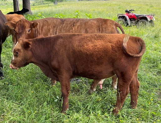 22-W-17 This handsome 3/4 lowline bull was calved on 3/24/22. He is sired by our red lowline bull Willie. He is going to make a very nice bull and is ready for his own herd of cows. Renee, I hope he makes a nice bull and beautiful calves for you. |