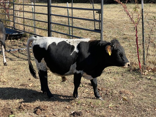 23-G-47 This handsome lowline cross bull was calved on 9/28/23. He should make a nice homestead type bull for someone wanting to raise there own little beef animals. He would pair well with one of our dairy heifers if someone wanted meat and milk.