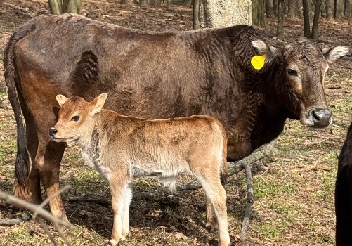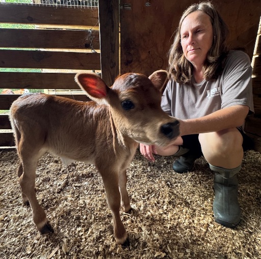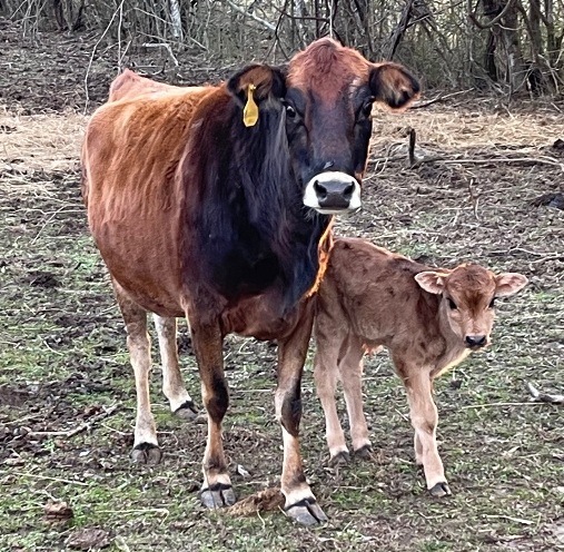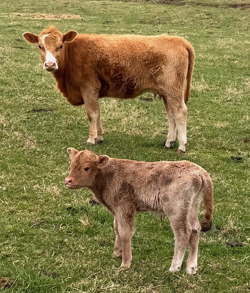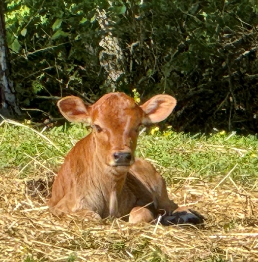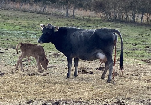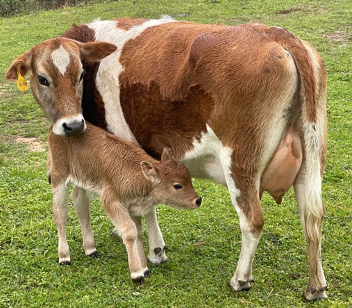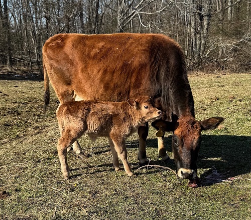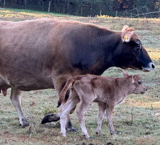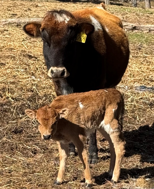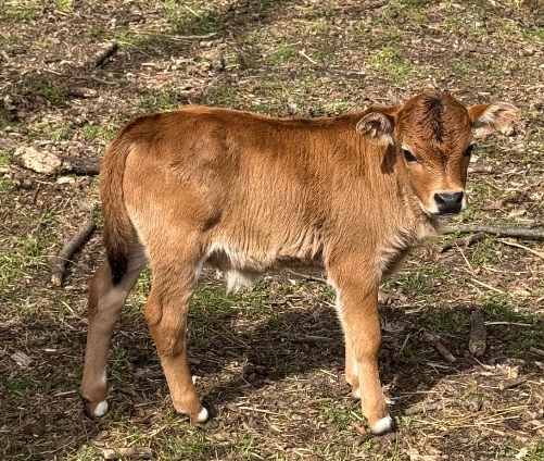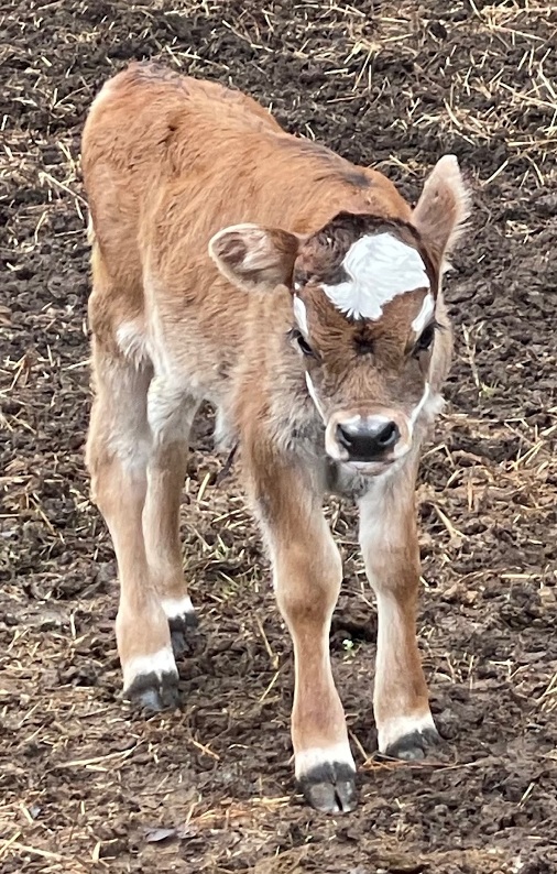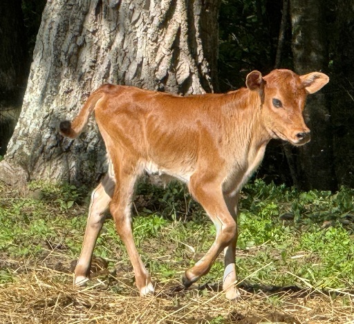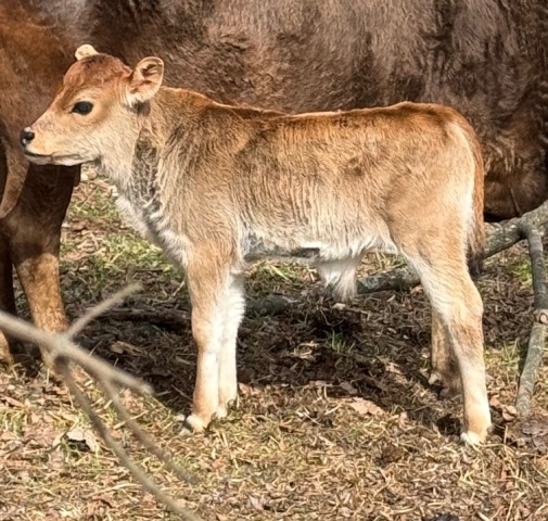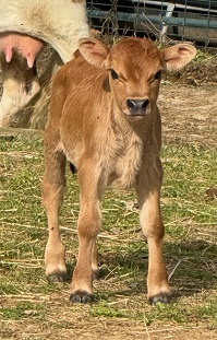 calved on 4/26/24. She is sired by Joseph, our 7/8 mini jersey x 1/8