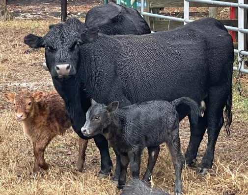 25-G-2 This handsome little lowline cross bull was calved on 1/2/25. He is out of a lowline cross cow named, Bennie. His sired by a Willie son named Grason. This is Grason's last calg here. He should make a nice little homestead bull or freezer beef. Abby and John, I hope he is great addition to your farm and freezer eventually :)