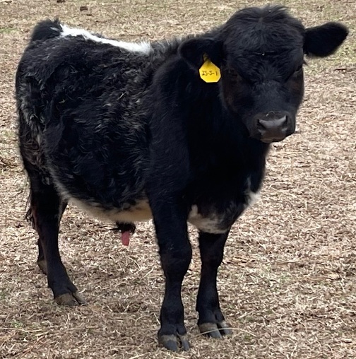 25-O-6 This handsome little lowline cross bull was calved on 1/19/25. His sired by a Willie son named O'malley. We will only have a few calves by O'Malley this year. This little guy should make a nice thick little beef bull. Abby and John, I hope he is great addition to your farm and freezer eventually :)