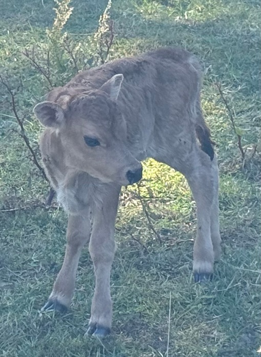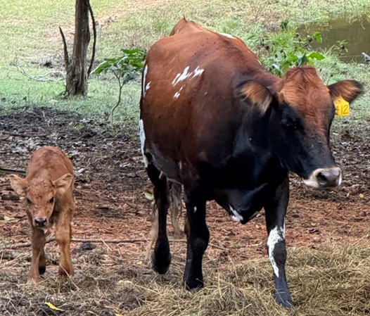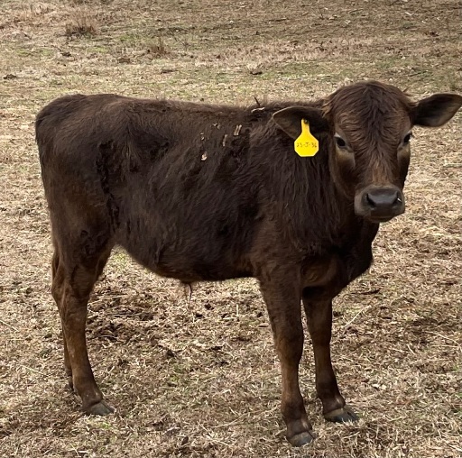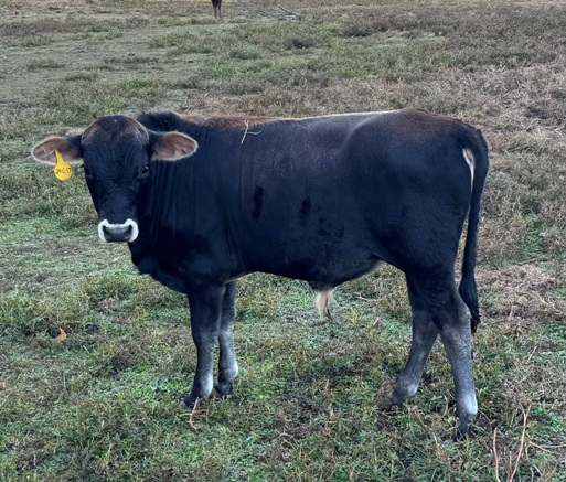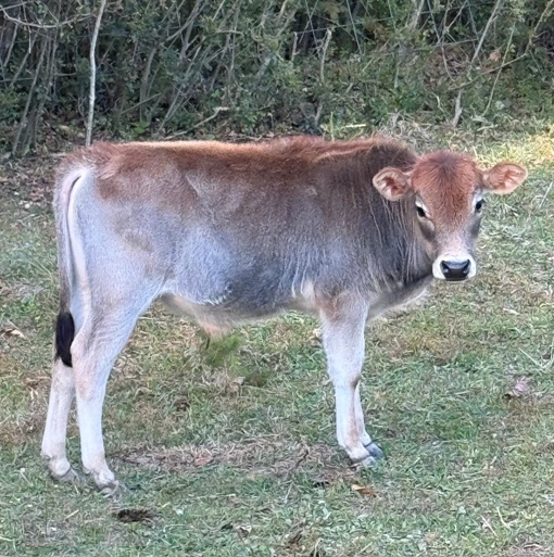 25-J-44 She is a sweetheart of a little heifer that was calved on 8/21/25. She is out of Nell, a homegrown mini jersey x zebu cow. She is sired by Joseph, our 7/8 mini jersey x 1/8 lowline bull. She is A2/A2 and polled. She will be bottle trained and ready for her new home by 9/7/25. Lindsey, I hope she makes a great little cow for you.