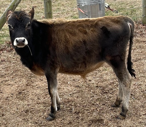 23-C-56 This gorgeous 3/4 mini jersey heifer calf was calved on 12/17/23. She is sired by our mini jersey bull, Cash and out of one of our homegrown cows, Honeybun. She is bottle trained and ready for her new home. She is polled. A2/A2 testing has been suubmitted. Jesee, I hope that you and your family enjoy the new additions. |