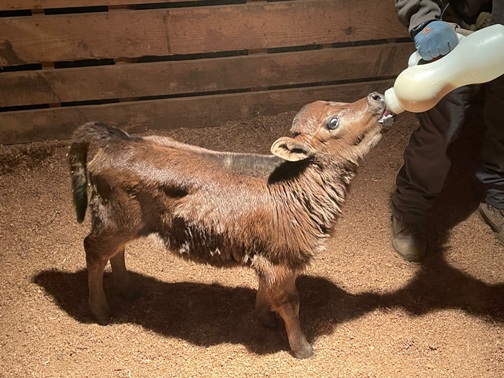 24-J-9 This pretty little dark fawn mini jersey cross heifer was calved on 2/14/24. She is a real sweetheart. She took to the bottle on her second feeding!. She is sired by Joseph, or 7/8 mini jersey x 1/8 lowline bull. She is out of Spec, a homegrown 1/2 mini jersey x 1/2 mini zebu. Update 3/14/24 we got her dna results. She is A2/A2. Emily, I hope that you and your family are happy with the new addition.