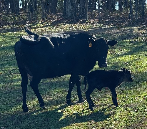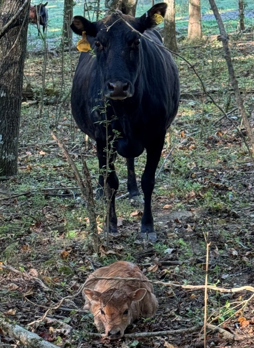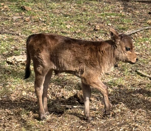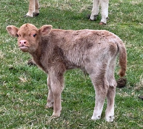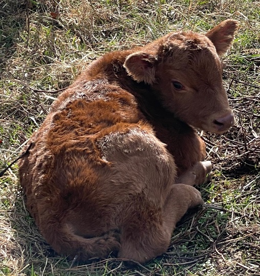 25-O-21 This lowline cross bull was calved on 3/5/25. He is sired by O'Malley and out of heifer 23-G-48. He will be a thick bull. It will be interesting to see his color as he matures. We have not had a calf colored quite like him before. I think he will be a little lighter colored than his dam. Abby and John, I hope he is great addition to your farm and freezer eventually :)
