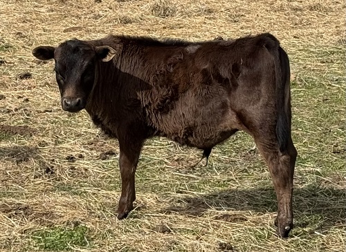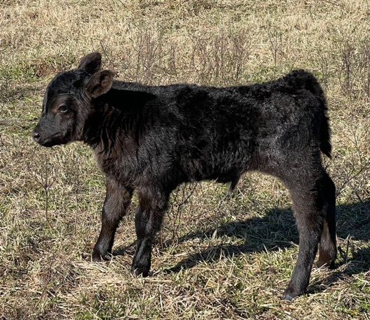 24-G-2 This lowline cross bull calf was calved on 1/11/24. He will make a nice beefy bull. He is out of one of our thicker built cows. He would be a nice breeder or feeder. George, I hope the steers grow off well and that you and your family enjoy the home grown beef.