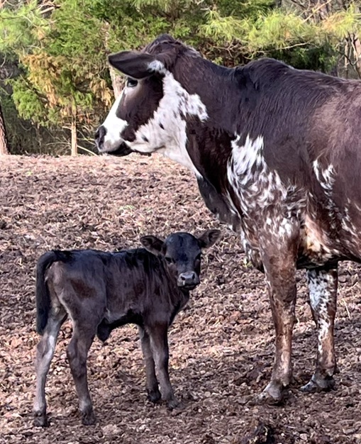 This heifer is absolutely beautiful. She was calved on 12/31/24. She is sired by Joseph, our 7/8 mini jersey x 1/8 lowline bull. She is out of DeeDee a lowline x Guinea Pineywoods cow. She is a2/a2 and polled by parentage. DeeDee has great teats for hand milking and this little beauty should too. She should make a great little dual purpose type homestead cow. She will be something to look at in the pasture each day too. Pam, I hope you and your family enjoy the new addition to your farm. |