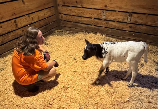 was calved on 5/9/23. She is sired by out mini jersey bull Joseph and
