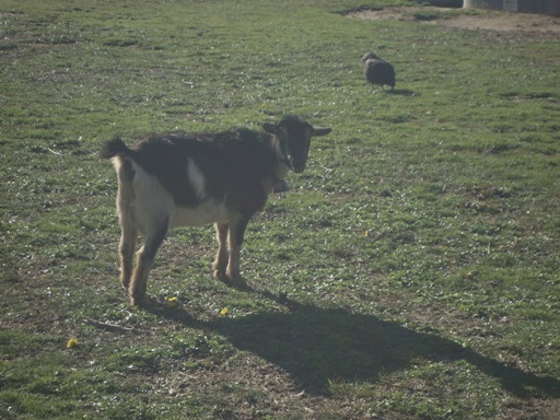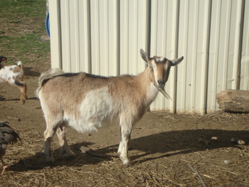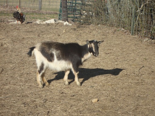 After we lost our little black doe, we found Sam on craigslist. Her owners were moving to town and had to find home for all of their animals. She is very protective of the goats and sheep. She has done a good job for us so far, even if she is a bit playful with the buck and ram at times. | |