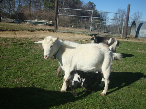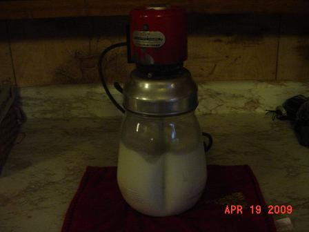 When the does kid, we milk them daily. We stall the kids at night and let them out with the does during the day. This allows them to get plenty of mothers milk as well as giving us all that we need. Josey and Jessie love the goats milk. I am not a milk drinker, but I enjoy a glass myself. We won an electric Dazey churn on Ebay and have been making our own butter and buttermilk as well. | |