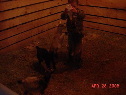 In April of 2008, we sold all of our grade pygmy goats and bought 4 registered Nigerian Dwarf goats. They are wonderful little goats and our kids had a wonderful time bottle feeding them. |