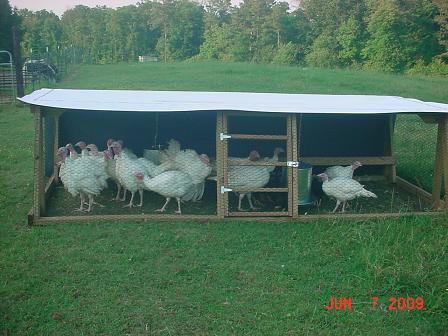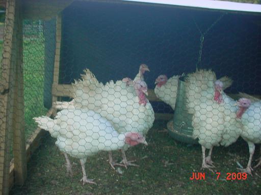 Well 16 of the turkeys have made it to 3 months of age. They are doing great, and like the chickens, feed consumption was cut in half when they were moved to their pen in the pasture. They mow the grass in a hurry each day. We are really enjoying these birds and look forward to hatching our own next year. | ![]() |