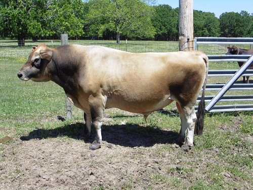 This Doe Creeks Tango. He replaced Remy as our dairy herd bull in the spring of 2016. He is A1/A2. Tango was a little larger than we really wanted, so he didn't stay real long. We do still have a few of his daughters in the herd though. |
